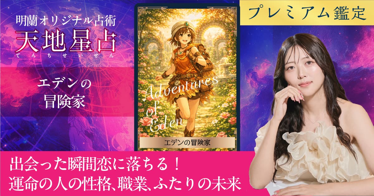 エデンの冒険家:出会った瞬間恋に落ちる!運命の人の性格、職業、ふたりの未来:天地星占【明蘭オリジナル占術】