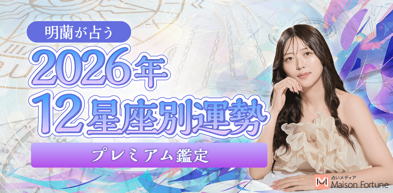 2025.12.03 2026年の運勢|明蘭が占う2026年12星座占い【総合運】 メゾンフォーチュン管理人 2026年気になるあなたの運勢は?明蘭が占います 占い師ライバーの第一人者としてSNSはじめ、各所で絶大な人気を博しているZ世代の占い師、明蘭。リピート率、口コミ紹介も多く老若男女問わず芸能人からの鑑定依頼も殺到中。 大人気占い師が、当サイトのために特別に占ってくれました。 皆さんにとって、2026年がよりよい年になりますように♪ ABOUT ME メゾンフォーチュン管理人